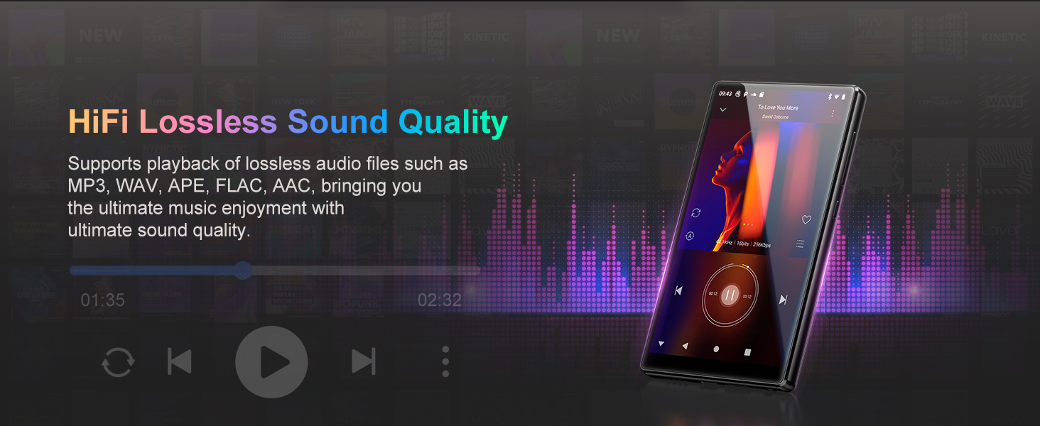 • 【Full Format 1080P Mp4 Player】This Mp4 music player adopts 4.7-inch high-resolution (1280*720) full touch screen (G+F+F multi-touch). The large screen provides you with a wider viewing angle, more accurate touch control, and can play 1080P HD videos very smoothly. Compatible with most video formats, including AVI, MKV, RMVB, MP4, MPG, MOV, without format conversion, bringing you an immersive movie audio-visual experience.