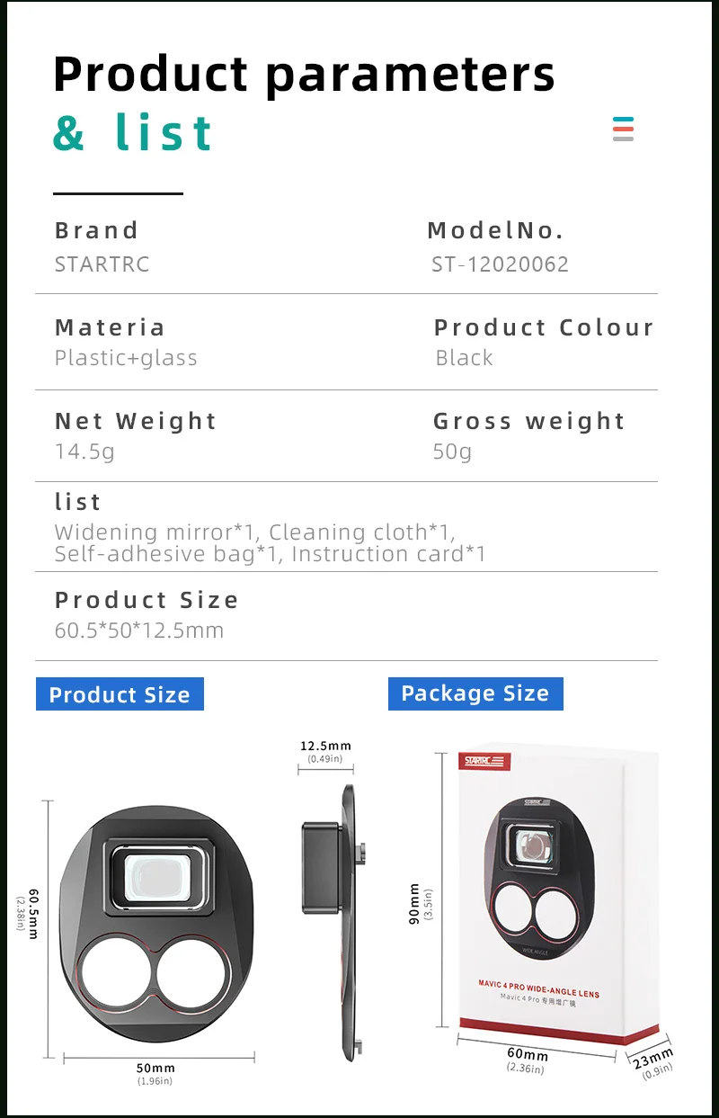 Name: Wide Angle Lens Filter for DJI Mavic 4 Pro