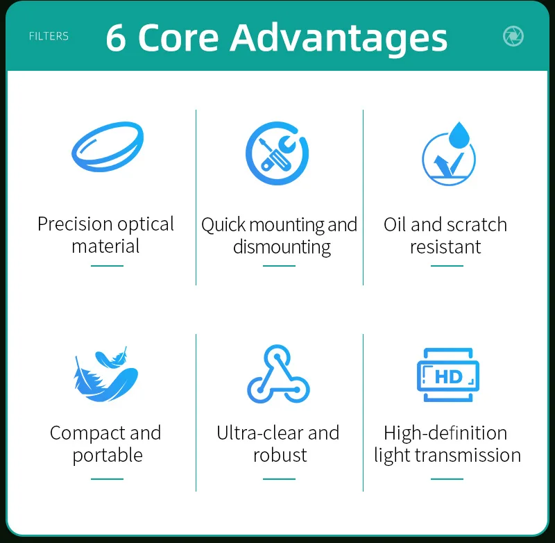 3. The aviation grade aluminum frame is laser engraved with a matte black finish to prevent light leakage or ghosting, ensuring that each filter is rigorously tested and will not add extra burden to your gimbal or interfere with the normal shooting of Mavic 4 Pro. It weighs only 15 grams.