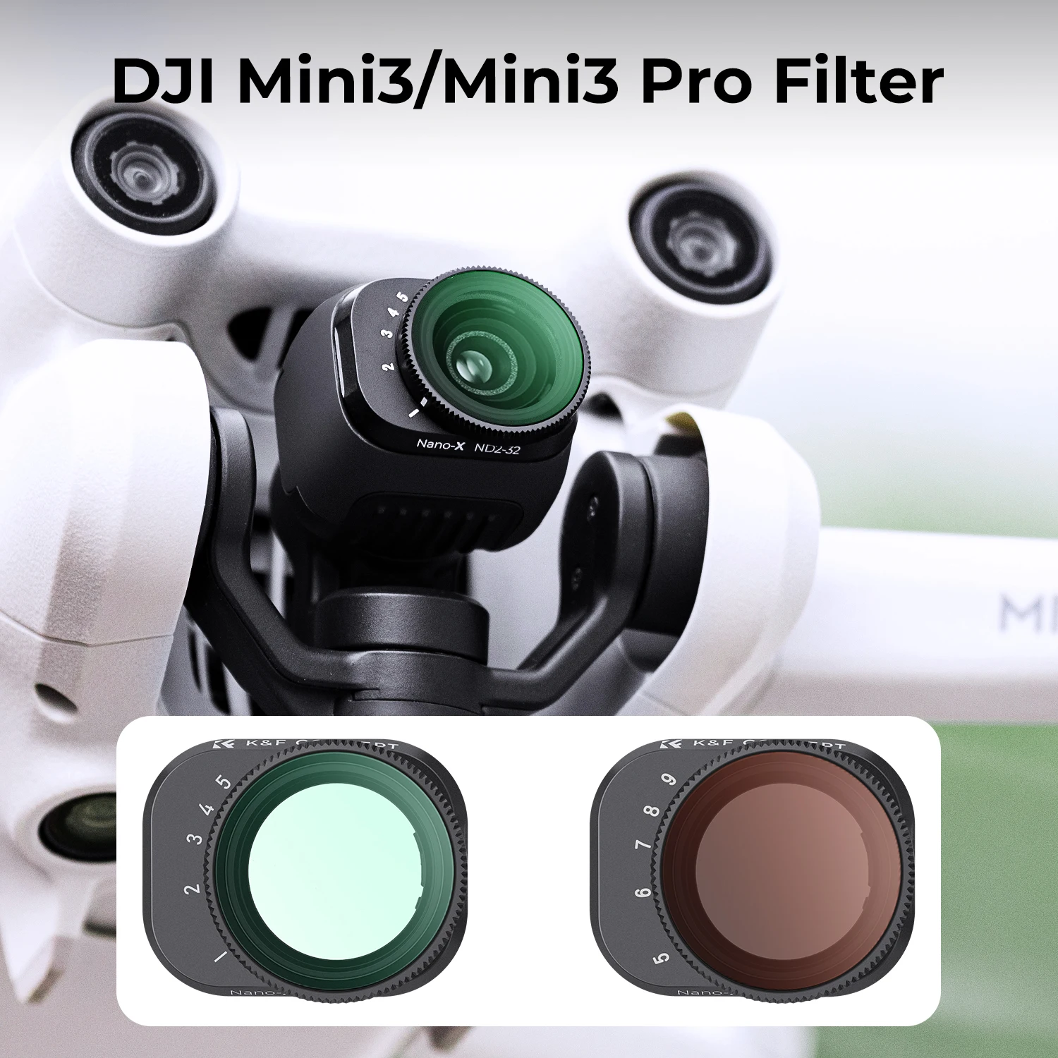 • K&F Concept Drone Filter for DJI Mini 3 Pro &Mini 3 UV/CPL/ND2-ND32/ND32-ND512 Variable Camera Coating Optical Glass Lens Filter
