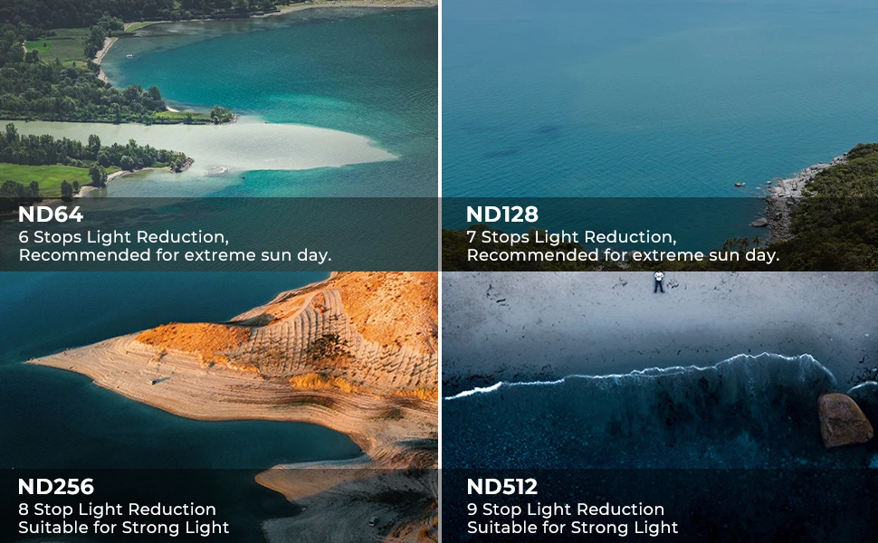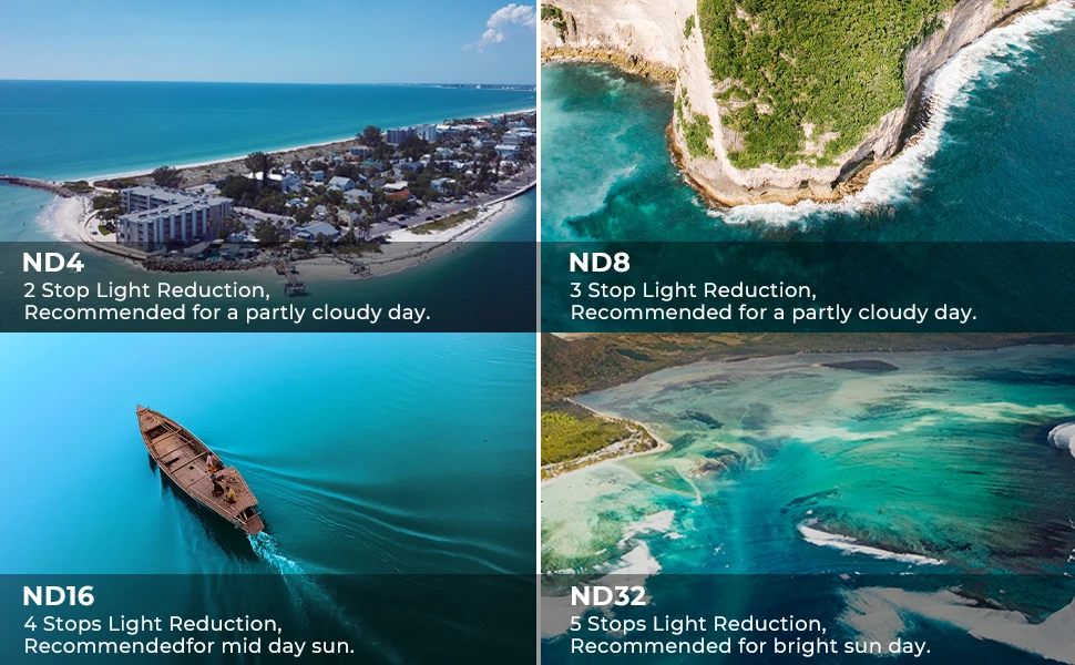• To reduce 1-5 OR 5-9 levels of light reduction and takes care of your needs for your all-day fun, from cloudy days to bright sunny days. Enhance your video / image quality, achieve your desired exposure without color shift.