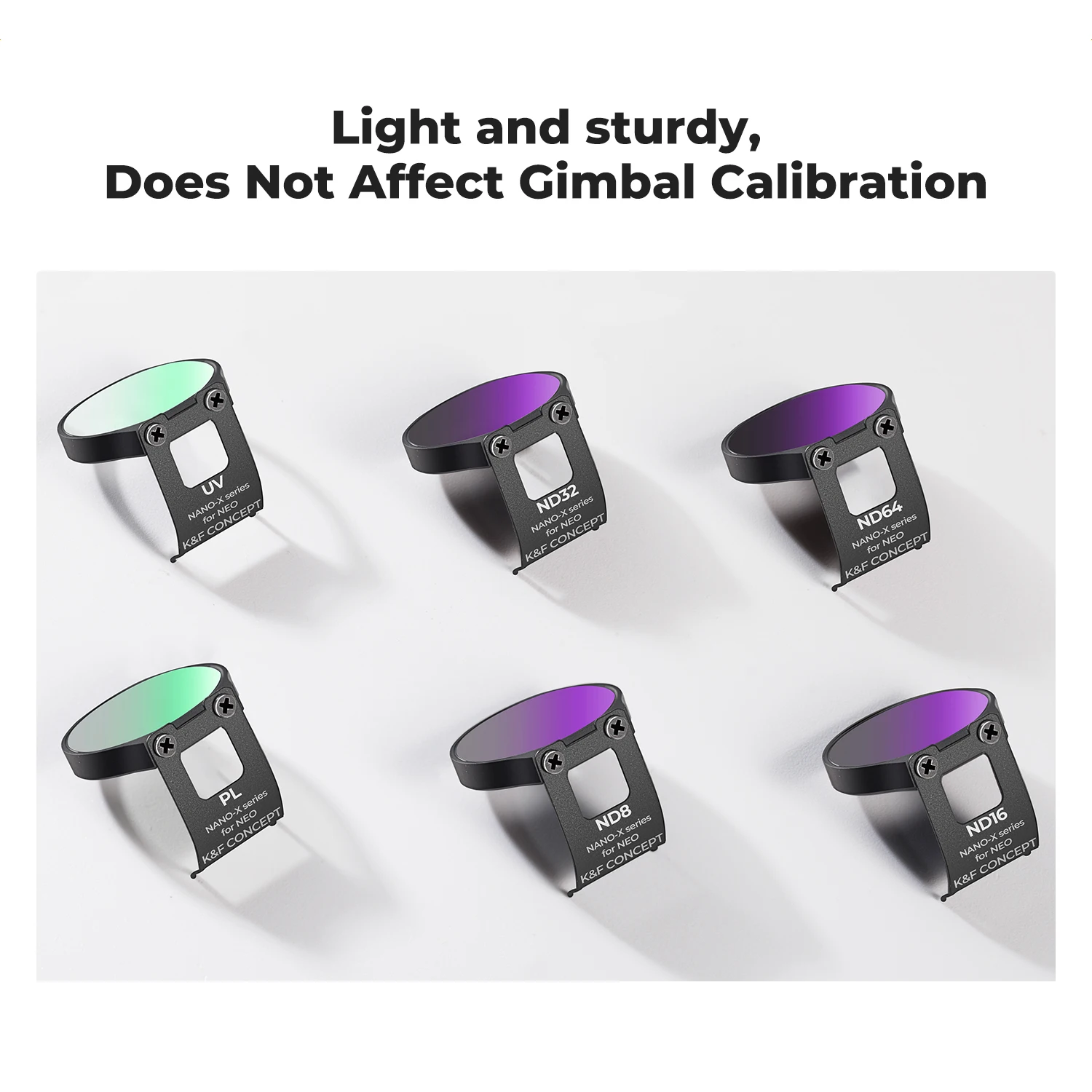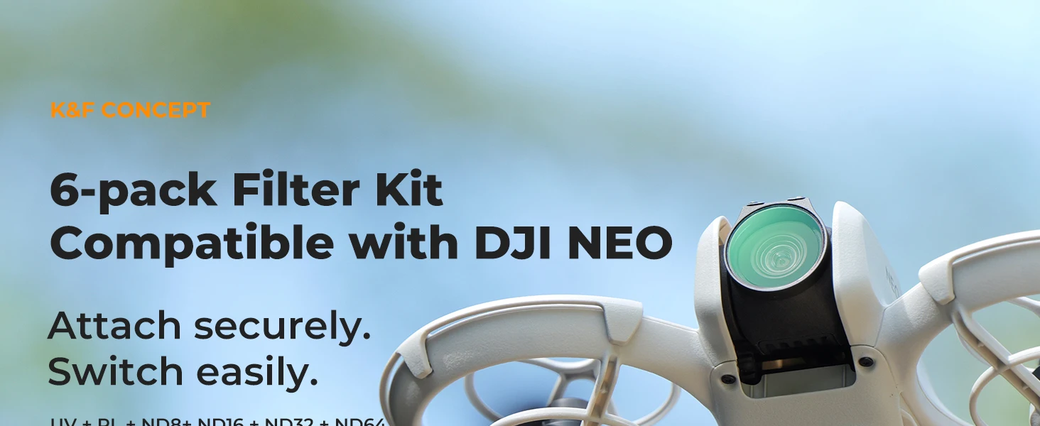 This latest ND & CPL & UV filter set from K&F Concept is specially designed for DJI NEO, each filter is lightweight to 0.5g, ensuring gimbal safety, which is made of top HD optical glass, ensures crystal clear imaging during aerial shooting.