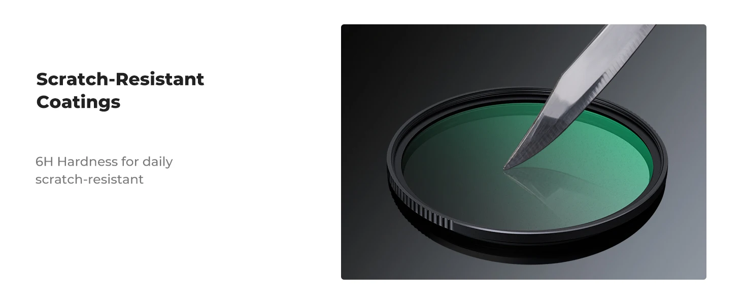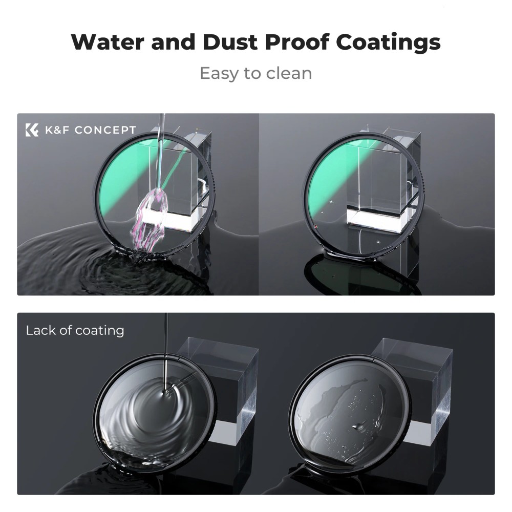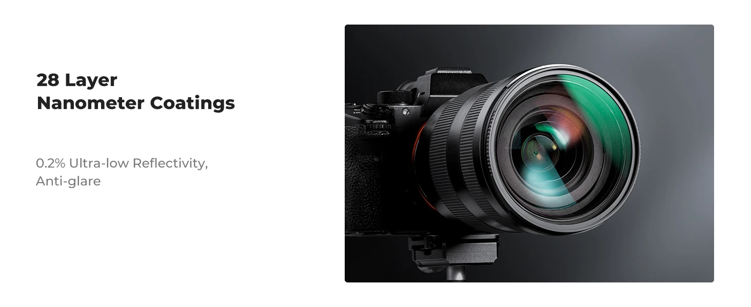 * 【28 Multi-Layer Coatings】 After optical grinding, the glass filter is coated with high-tech film. waterproof, scratch resistant and oil proof. It has the characteristics of hard scraping without any influence on the image quality. Even if it is contaminated with water droplets or oil, which can be easily removed and cleaned.