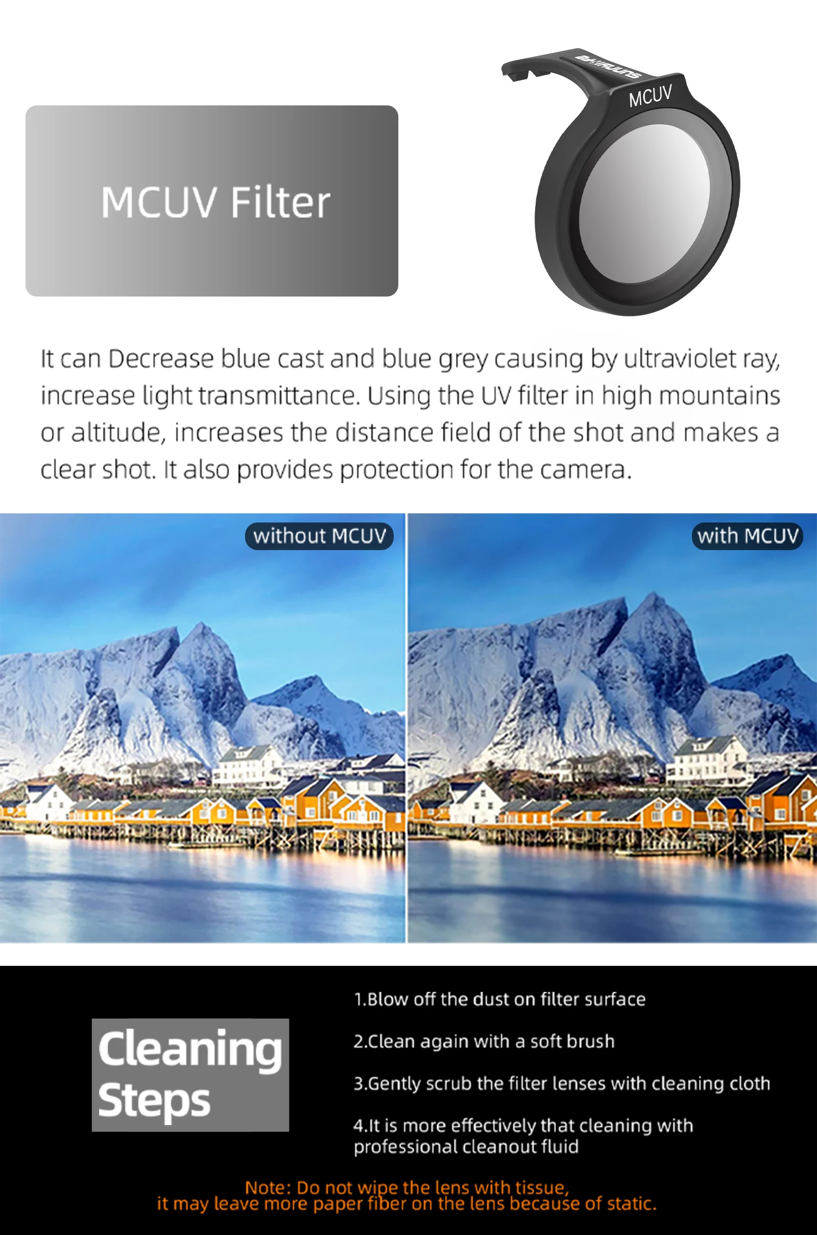 Ultra-light filter, single net weight is about 0.7g, does not increase the load of the gimbal.