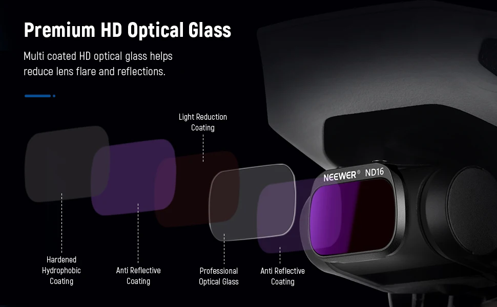 【30 Multi Layer Coated HD Optical Glass】 The filters are made of HD optical glass with a great light transmission and a high definition quality. The double sided multi layers of NANO coatings are waterproof, oil proof & scratch resistant, effectively reducing the glare and reflection.