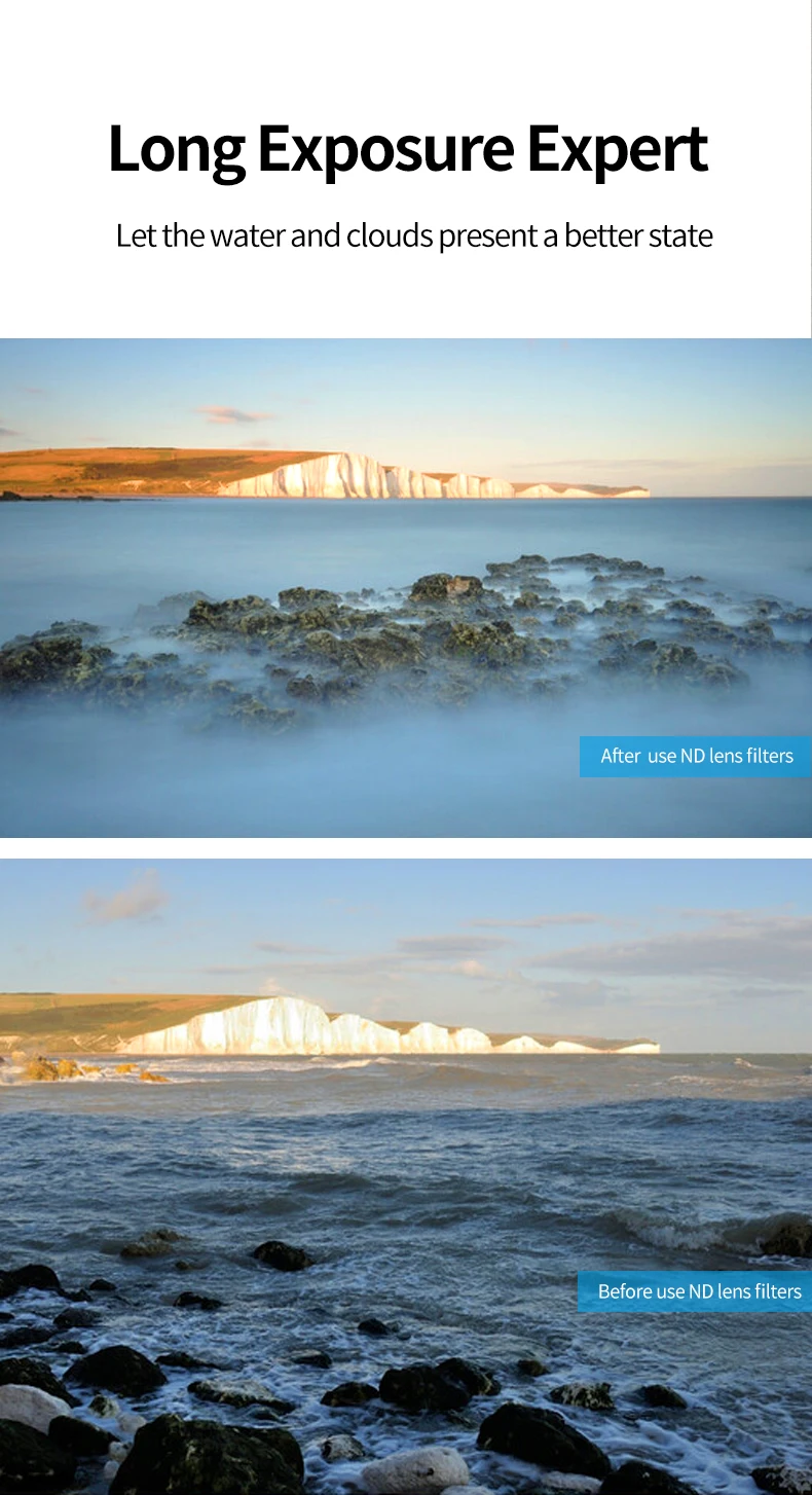 1.Reduce an amount of visible light that enters the lens, allowing the user to utilize wider apertures or slower shutter speeds, particularly in bright conditions.