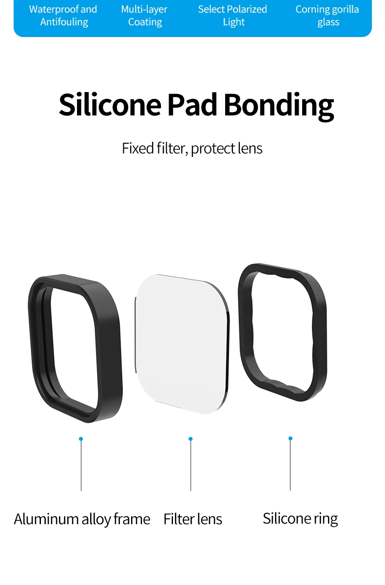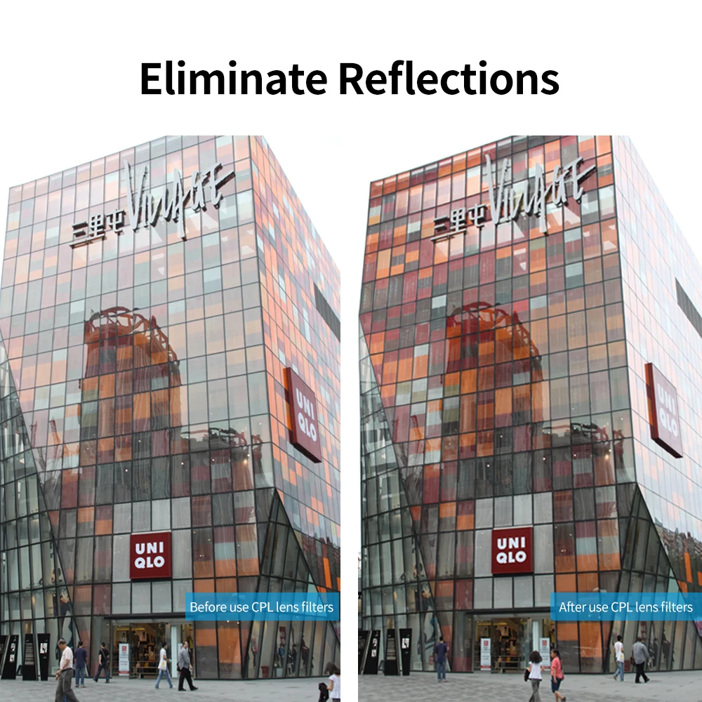 1.Polarizing filter eliminates reflections from non-metallic surfaces, and increases contrast and color saturation.