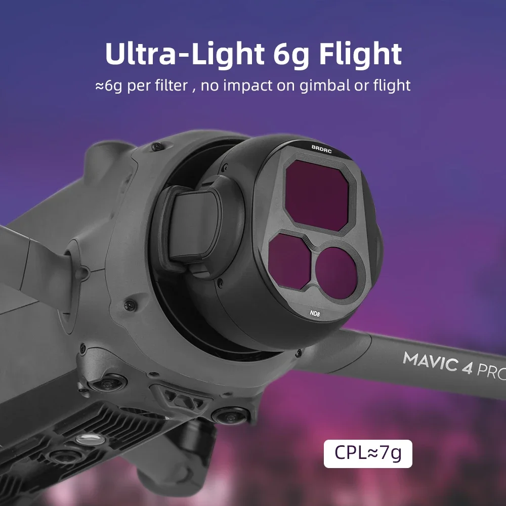 8. Ultra-Light 6g Flight6g per filter , no impact on gimbal or flight