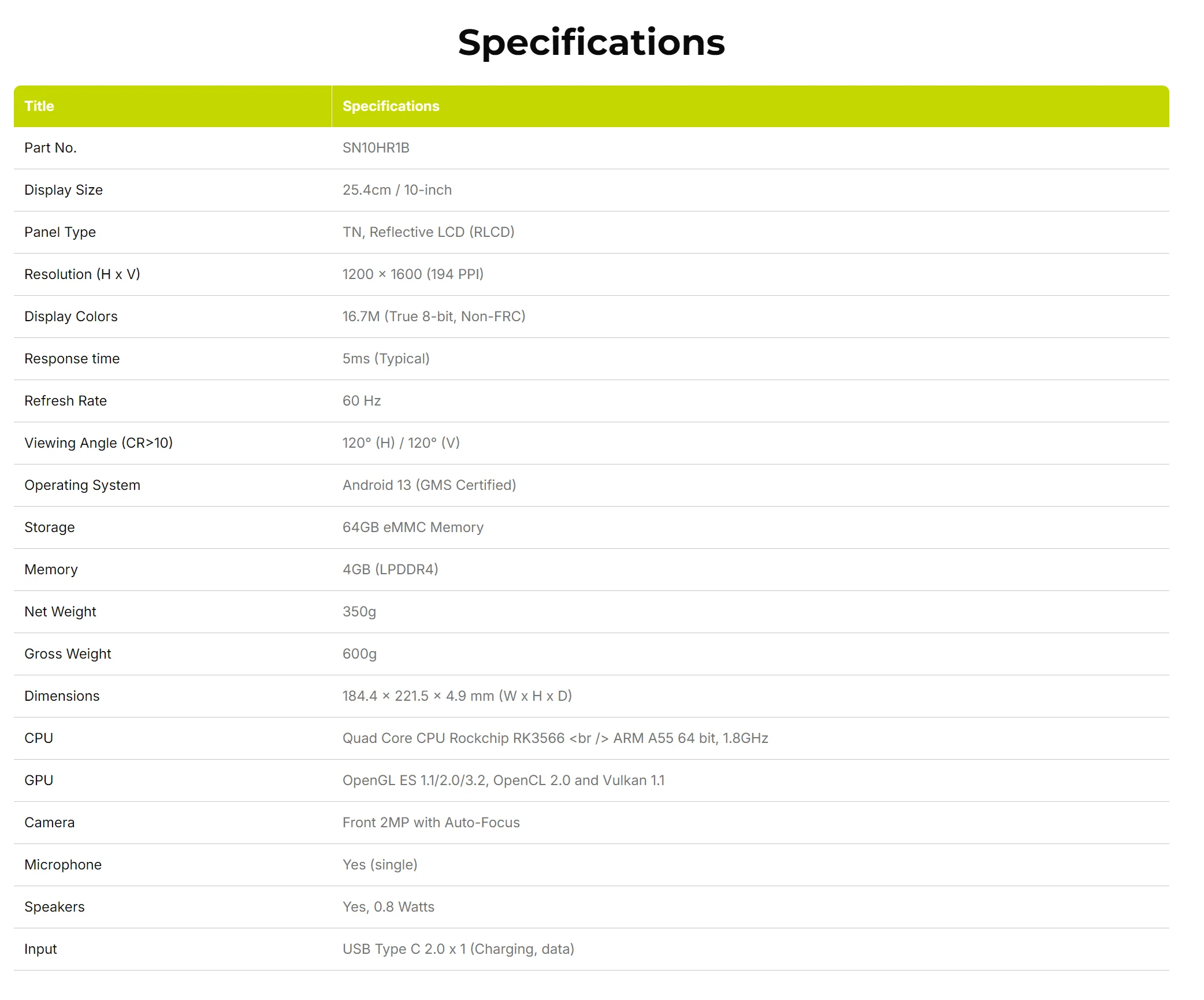 10 inch Ebook Reader Ultra-thin Color E-ink Screen Tablet, Portable Electronic Book ereader, Android 13 OS support Google Play