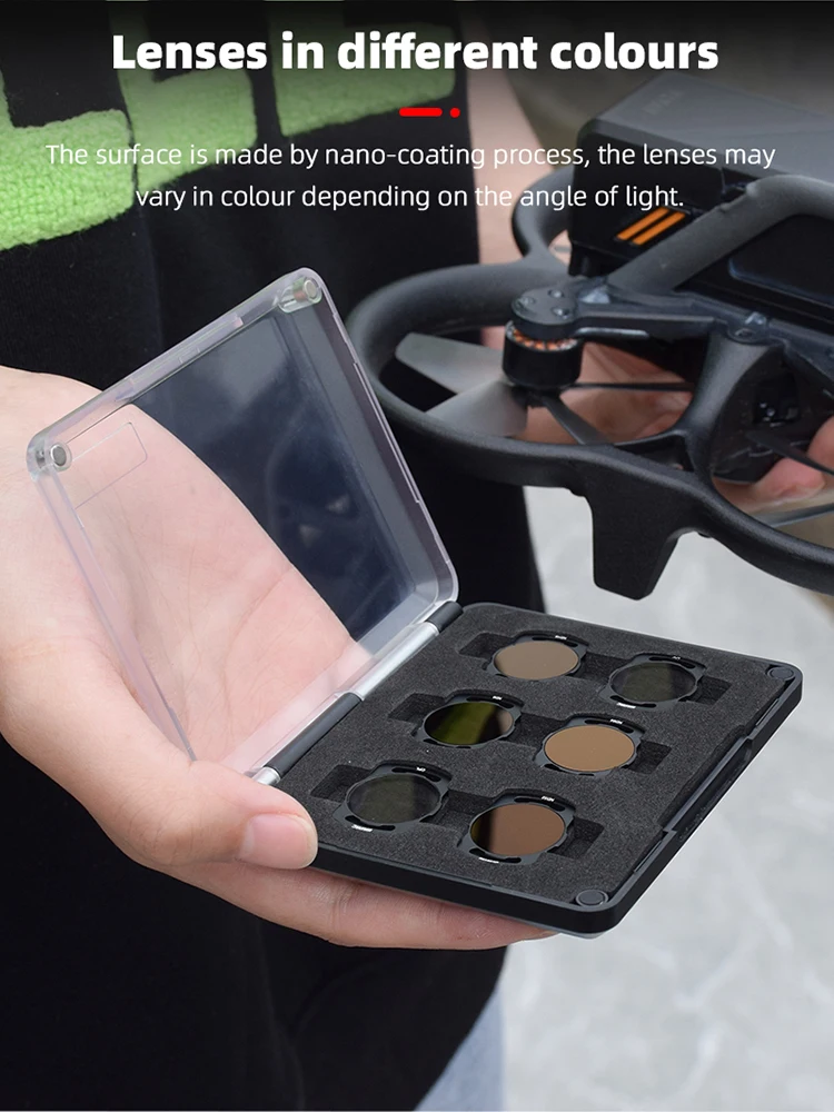 4. a magnetic storage case for the set of filters, with a soft sponge inside to hold the filters in place so that they do not fall out, allowing you to carry them far,