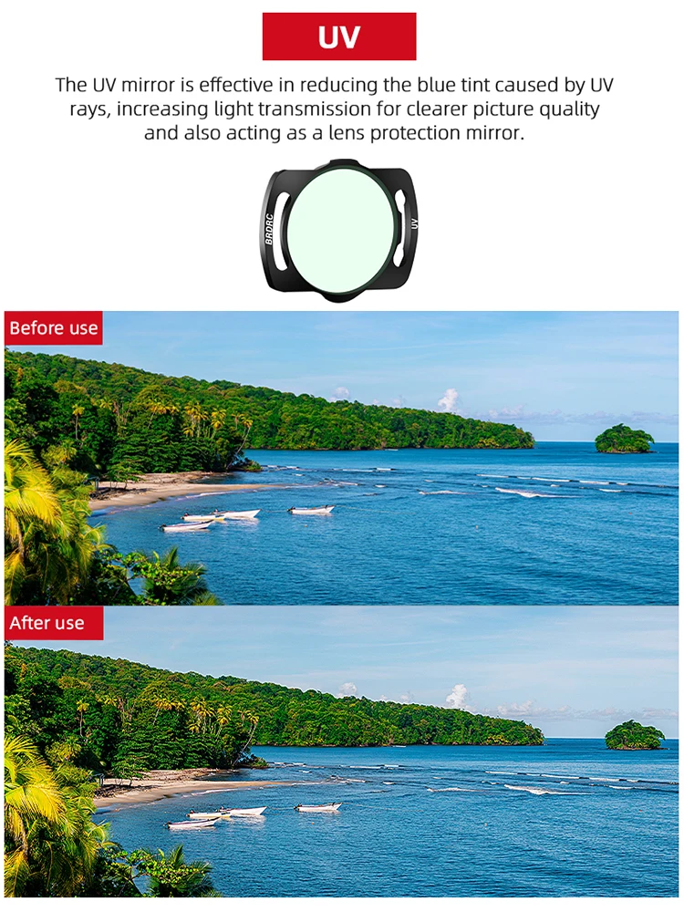 1. Only UV filters can transmit 98.5% of light, CPL/NDfilters cannot be expressed in terms of light transmission.