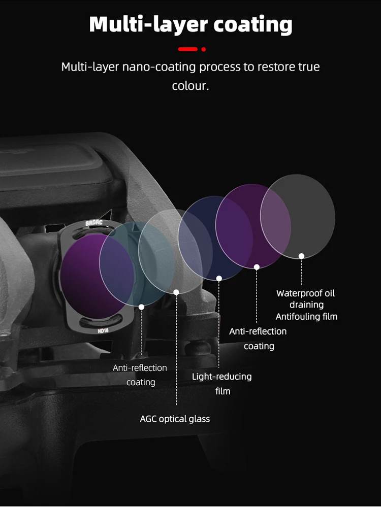 2. multi-layer nano-coating process, giving the lens high quality waterproof, oil-proof, dirt-proof and scratch-proof performance,