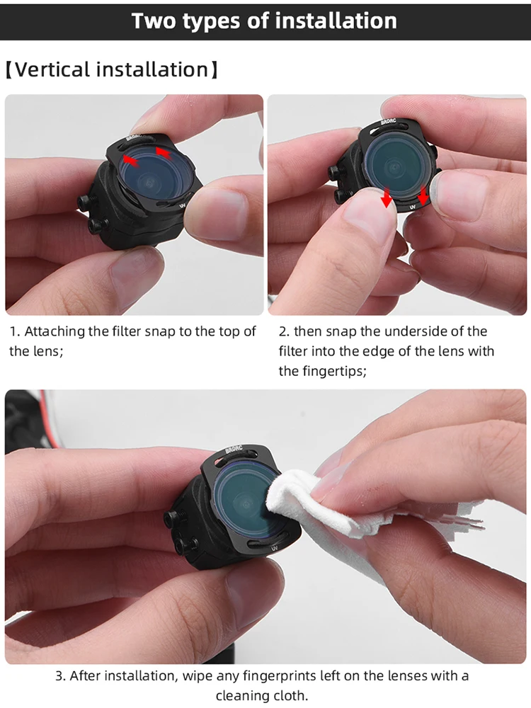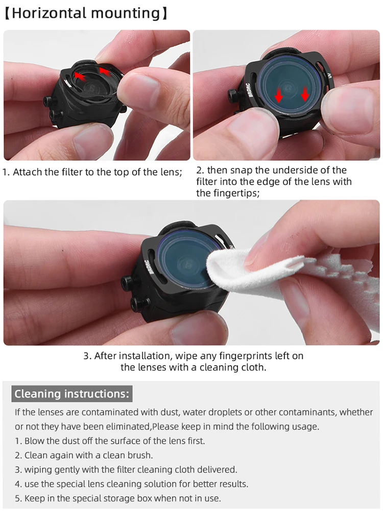 4. the installation and disassembly will touch the lens and leave fingerprints, use a cleaning cloth to wipe the lens.