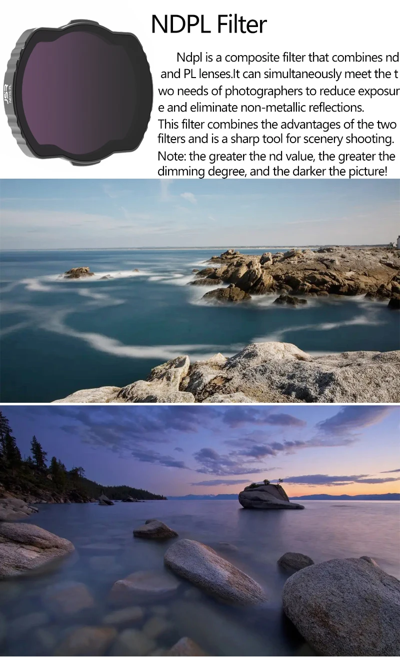 - You can get more freedom to control the aperture and shutter, bring more creative space for exposure methods, and effectively prevent overexposure. The number behind ND represents the ability of the ND lens to block light