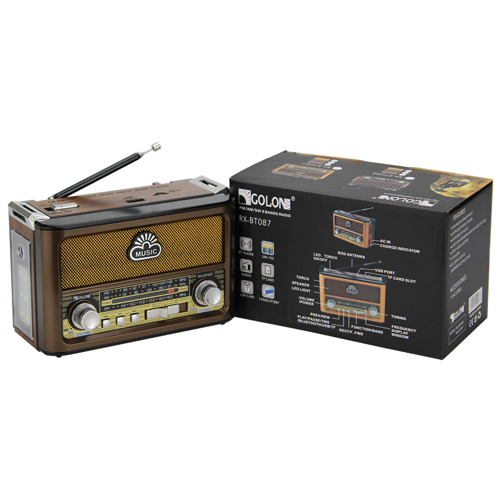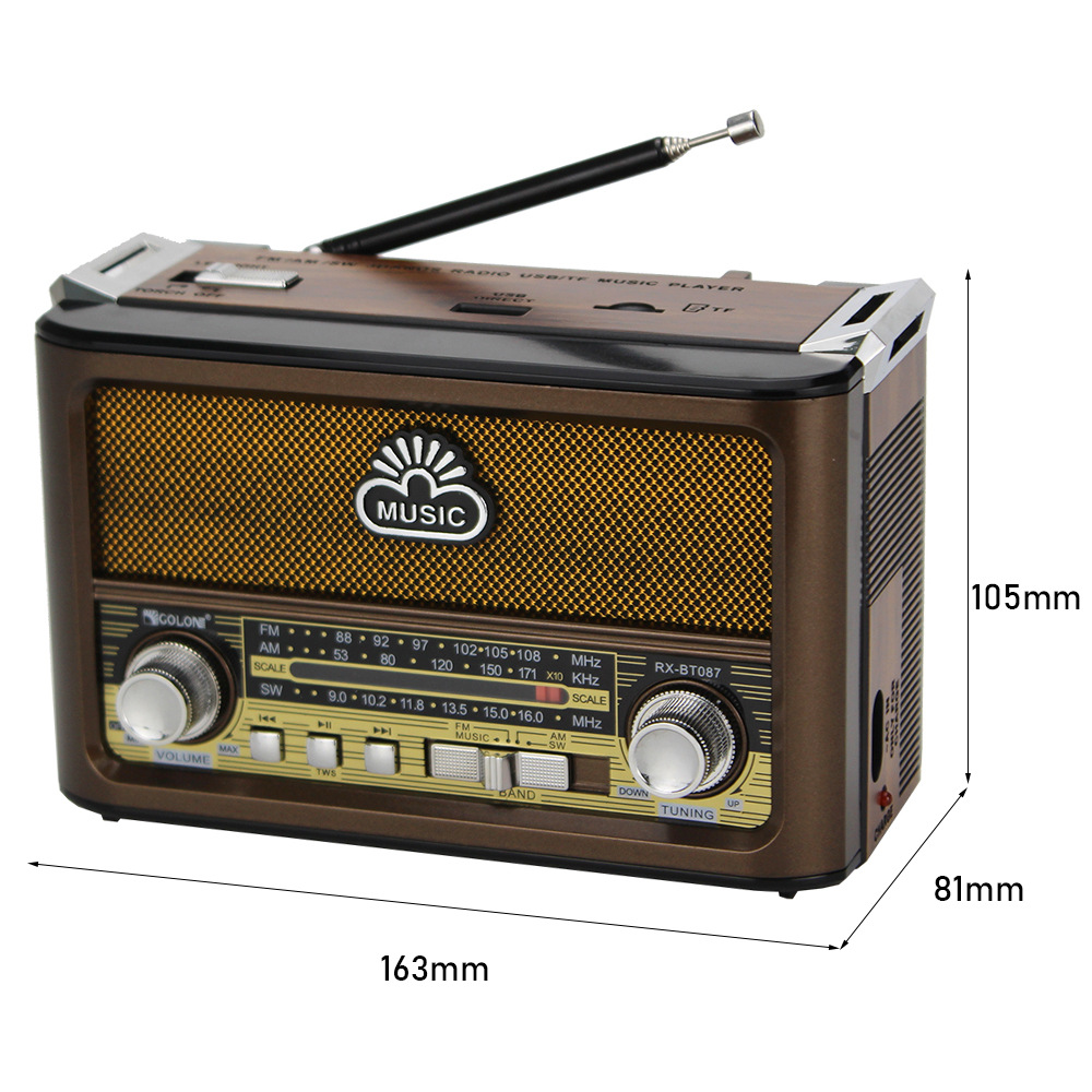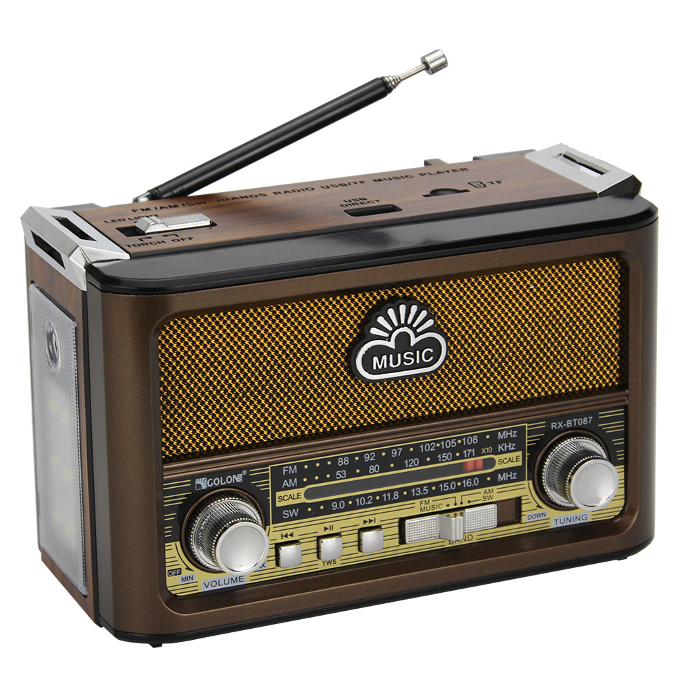 Vintage AM/FM/SW Radio with Light Home Radio Portable Wireless Bluetooth Audio TF Card USB Flash Disk MP3 Player